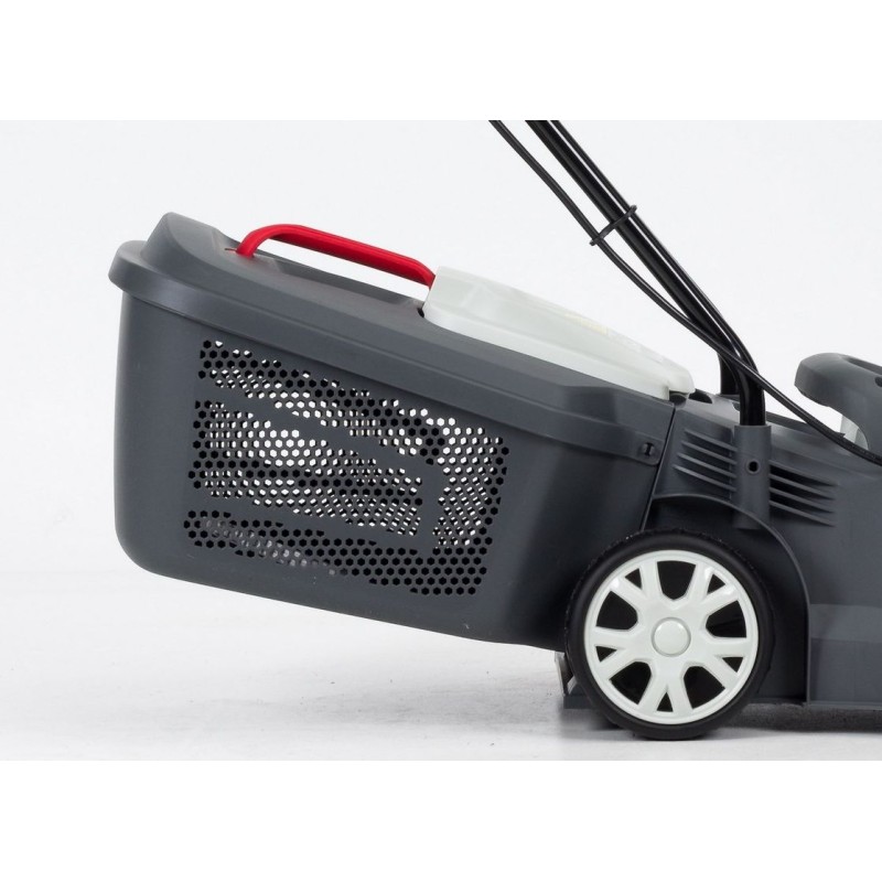 Das Gehäuse aus hochwertigem Kunststoff sorgt für Langlebigkeit und Widerstandsfähigkeit gegen Beschädigungen. Das geringe Gewicht der Maschine von nur 7 kg garantiert hervorragende Wendigkeit und einfache Handhabung. Diese Lösung werden sicherlich Frauen zu schätzen wissen, die sich nur ungern oder gar nicht an die Arbeit mit einem schweren Benzinrasenmäher wagten. Der große, aerodynamisch geformte Kunststoff-Grasfangkorb mit einem Fassungsvermögen von 27 l überzeugt nicht nur durch seine Größe. Die aerodynamische Luftführung sorgt für eine optimale Ausnutzung des Korbraums, und die große Öffnung sowie der praktische Tragegriff ermöglichen ein einfaches und vollständiges Entleeren.