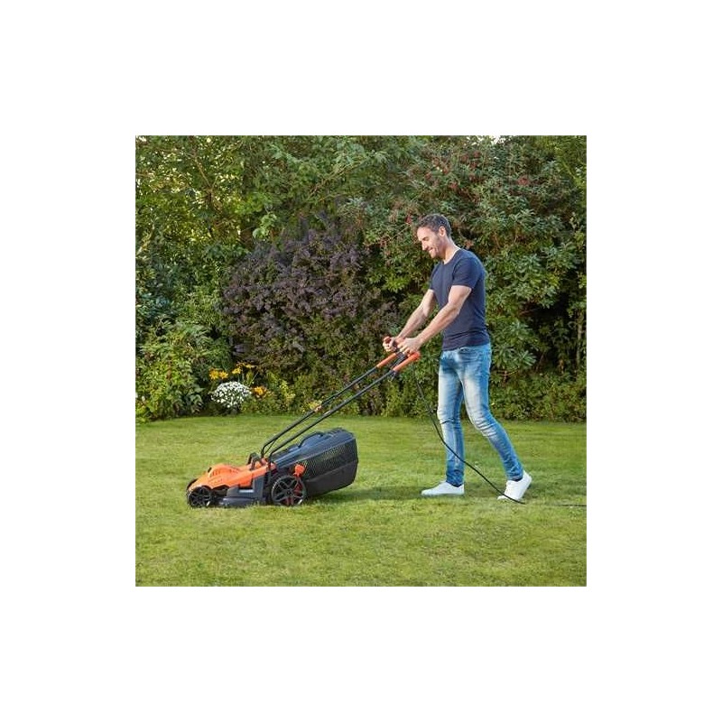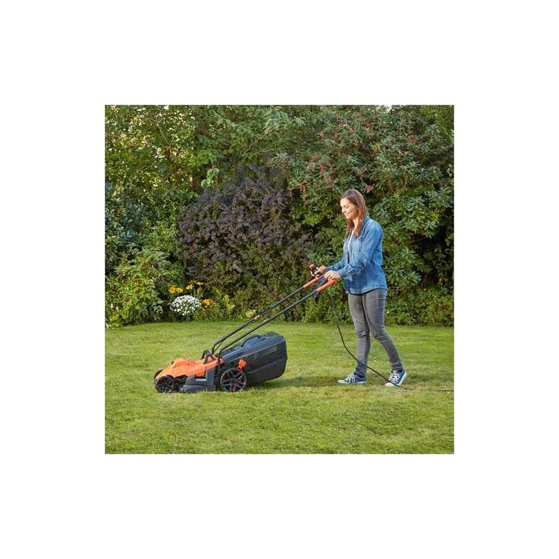 • Leistungsstarker 1400-W-Elektromäher mit einer Schnittbreite von 34 cm für kleine und mittelgroße Rasenflächen