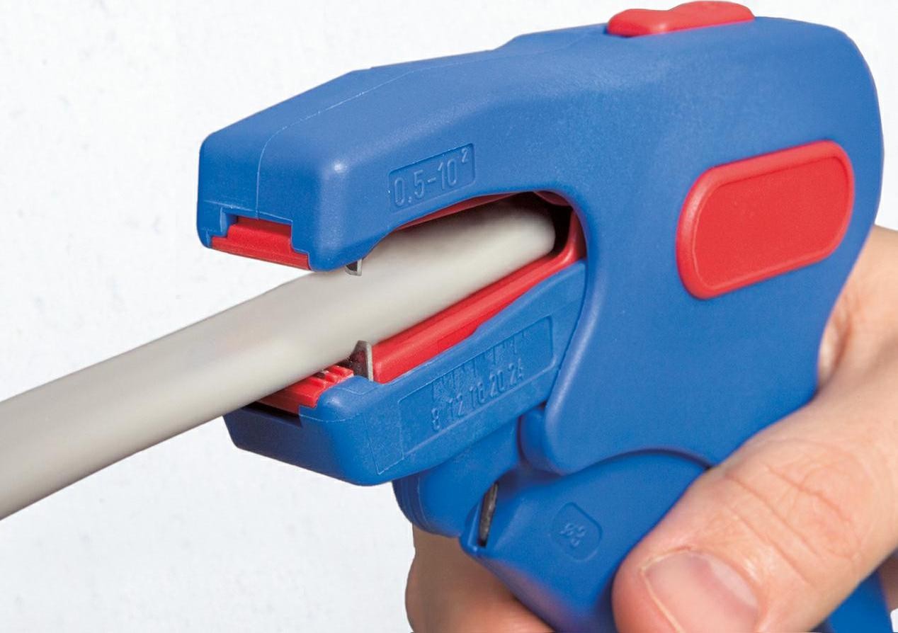 Arbeitsbereich: 0,75 – 4 mm². Präzises Arbeiten dank optischer Längenanzeige. Integrierter, leicht zugänglicher Seitenschneider bis 3 mm O