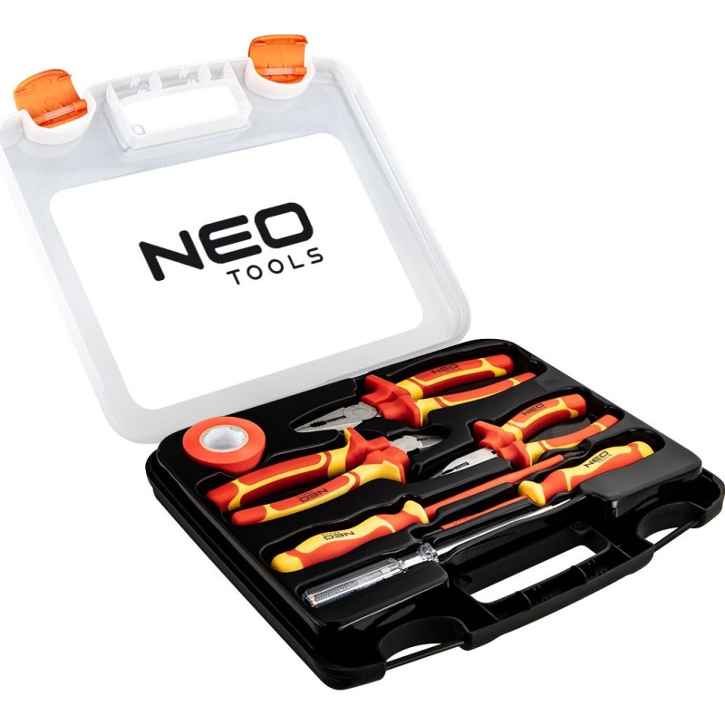 Das 1000-V-Werkzeugset NEO (Art.-Nr. 01-237) enthält 7 Teile: darunter Schraubendreher und Zangen. Zertifiziert für Arbeiten unter Spannung bis 1000 V. Die Schraubendreherklingen bestehen aus extrem widerstandsfähigem S2-Stahl. Die Zangenbacken sind aus Chrom-Vanadium-Stahl geschmiedet. Die ergonomischen Zweikomponenten-Griffe erhöhen den Arbeitskomfort. Die Zuverlässigkeit des Produkts wird durch eine 25-jährige Garantie bestätigt. Die Marke NEO erfüllt die Erwartungen von Profis.