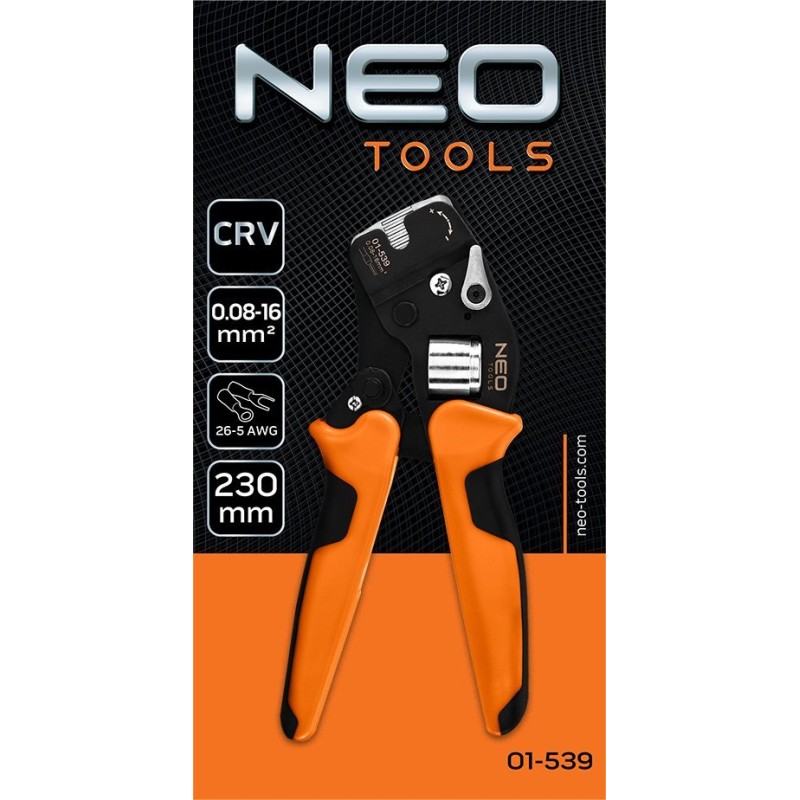 Neo Crimpzange für Aderendhülsen CRV 230 mm, selbstausrichtend 0,08–16 mm², AWG 26–5