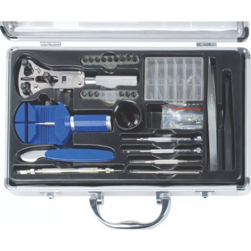 Dieses umfassende Uhrmacher-Werkzeugset von Brüder Mannesmann bietet alles, was Sie benötigen, um mit der Reparatur von Uhren, Schmuck, Wanduhren und Uhrenarmbändern zu beginnen.