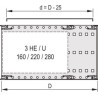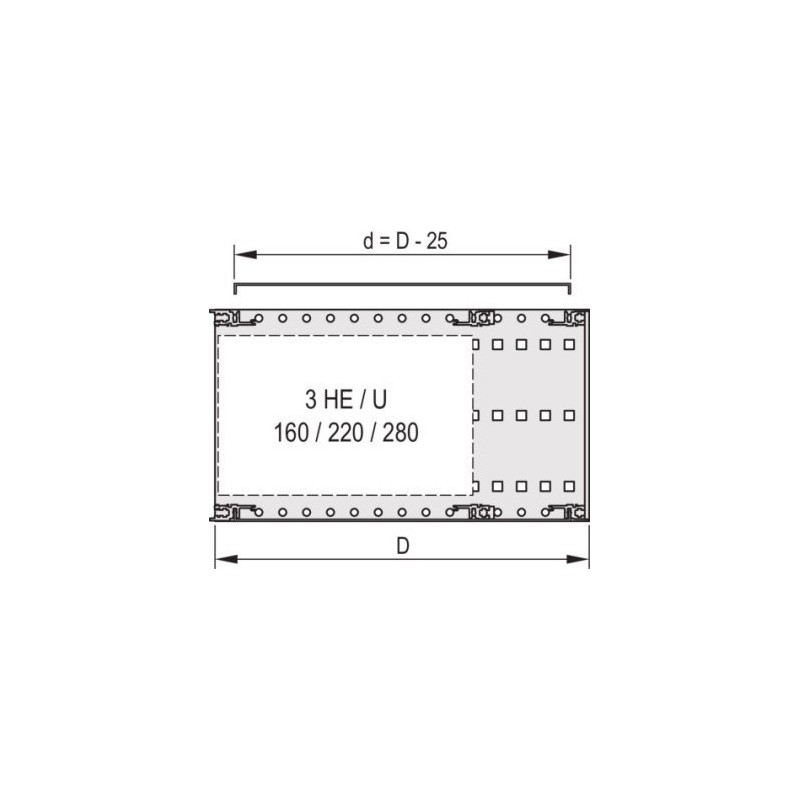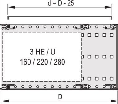 EuropacPRO-Abdeckung, universell, 42HP, 235 mm EMV-Abdeckung 42HP 235D 2PC Kann mit allen horizontalen Schienen verwendet werden – Zur variablen Positionierung der horizontalen Schienen, z. B. für Leiterplatten mit Sonderformaten – Abschirmung mit optionaler EMC-Dichtung aus Edelstahl zwischen Abdeckung und Seitenwand – Lochbild 58