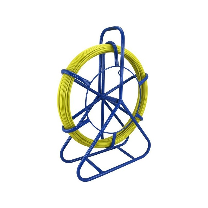 Die strapazierfähige, hoch elastische Faser, die biege- und reißfest ist, wurde auf einem Metallständer mit Aufwickelfunktion angebracht, der mit Transportrollen ausgestattet ist (je nach Ausführung). Darüber hinaus wurde die Faser mit gelbem PE-Kunststoff ummantelt, der eine Schutzfunktion erfüllt und für eine bessere Gleitfähigkeit während des Einsatzes sorgt.