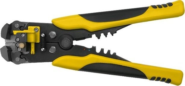 Der automatische Abisolierer ist ein sehr handliches Werkzeug zum Entfernen der Isolierung von einadrigen Leitungen mit einem Durchmesser von 0,5–6 mm² (24–10 AWG) oder von Adern in mehradrigen Leitungen; die Anpassung an den Kabelquerschnitt erfolgt automatisch. Er verfügt über eine Rückstellfeder, die die Hand erheblich entlastet und die Arbeit erleichtert. Die Hauptfunktionen dieses Werkzeugs sind das Abisolieren, das Crimpen von Kabelschuhen und präzises Schneiden.