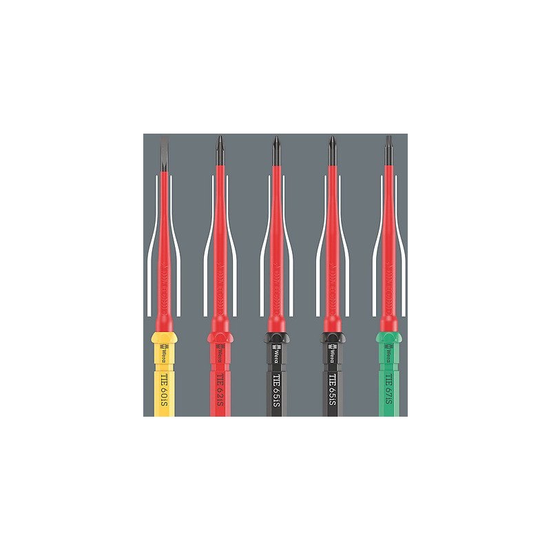 Das Set umfasst verschiedene VDE-Schraubendreher, darunter Flach-, Kreuzschlitz- (PH und PZ) sowie Torx-Schraubendreher, die einzeln gemäß der Norm IEC 60900 geprüft wurden. So können Sie sicher sein, dass die Werkzeuge auch unter schwierigen Bedingungen sicher im Einsatz sind.
