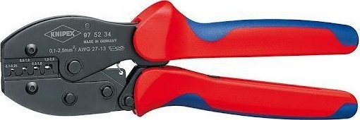 Knipex PreciForce Crimpzange 97 52 34 SB (rot/blau, Abisolieren, Crimpen 0,1–2,5 mm)