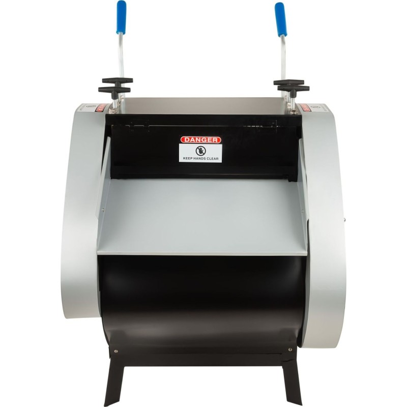 Das Gerät ist mit einundzwanzig Einführöffnungen unterschiedlicher Form (flach, rund, BX usw.) und Größe ausgestattet. Die Walzen und die dazu passenden gehärteten Klingen schneiden präzise in die Isolierung ein und ermöglichen so ein bequemes und schnelles Herausziehen der Metalladern (unabhängig davon, ob es sich um ein ein- oder mehradriges Kabel handelt).
