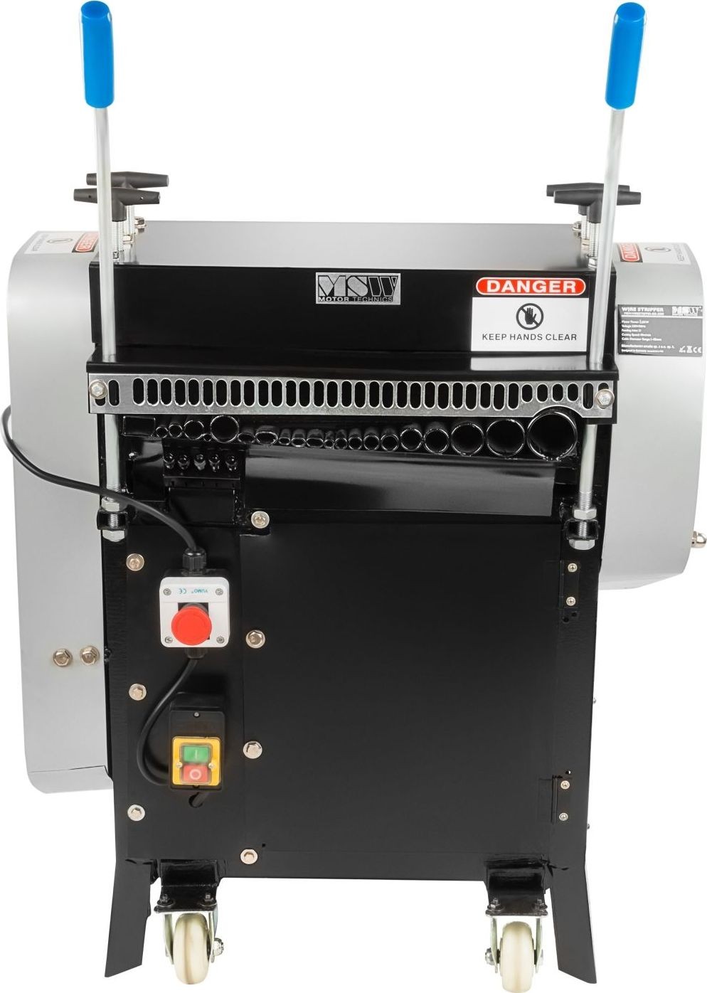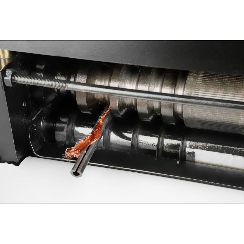 Die Leistungsfähigkeit der Abisoliermaschine ist dem 2200-W-Motor zu verdanken, der eine Schnittgeschwindigkeit von bis zu 23 m/min gewährleistet. Die Maschine lässt sich bequem an der Arbeitsfläche befestigen, wodurch ihre Stabilität erhöht wird. Dies ermöglicht eine effiziente und umweltfreundliche Kabelrückgewinnung. Zusätzlich ist das Gerät mit praktischen Rollen ausgestattet, die den Transport erleichtern.