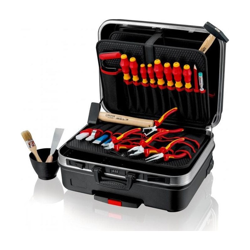 • Ausgestattet mit sechs KNIPEX-Werkzeugen, insgesamt 24 Markenwerkzeuge, teilweise VDE-geprüft nach DIN EN 60900