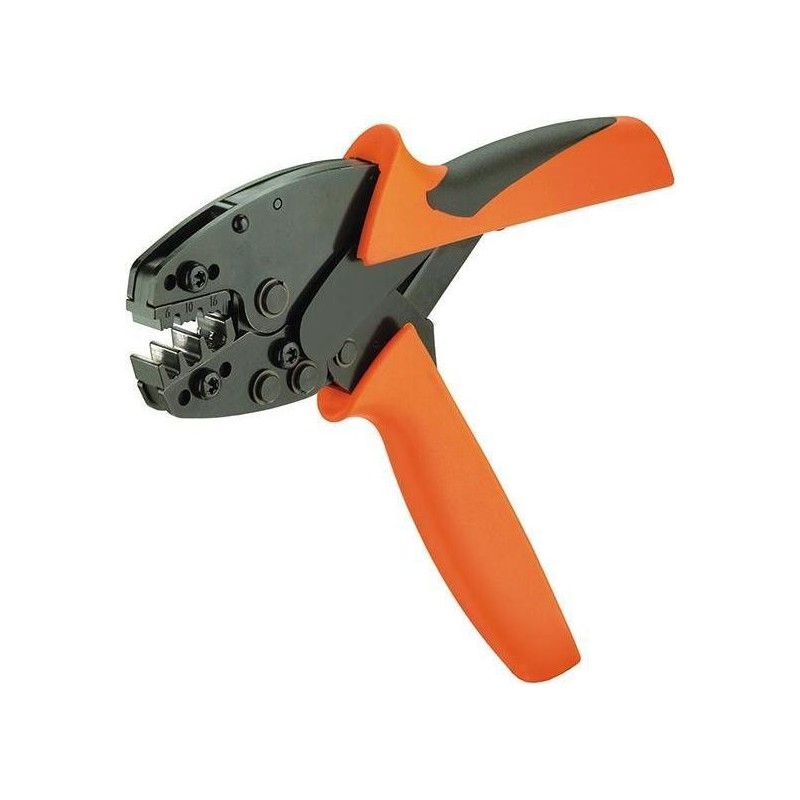 Ausführung: Zangenkörper aus Stahl, mit einer Verriegelung, die ein korrektes und vollständiges Crimpen gewährleistet. Entriegelungsmöglichkeit bei eventuellen Bedienungsfehlern. Griffe mit Mehrkomponenten-Kunststoffaufsätzen.