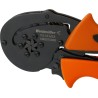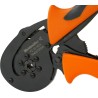 Zange zum Crimpen von Kabelschuhhülsen mit und ohne Kunststoffflansch, Sechskantcrimpung, Arbeitsbereich 0,14 – 10 mm². Automatische Verriegelung garantiert die Crimpqualität. Entriegelbar bei Bedienungsfehlern.