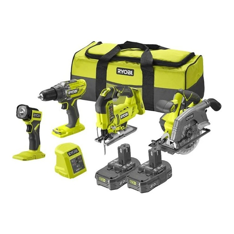 Ryobi RCK184D-220S Elektrowerkzeug-Set mit 4 18-V-ONE+-Elektrowerkzeugen, inklusive zwei Akkus, einem Ladegerät und einer Ryobi-Tasche