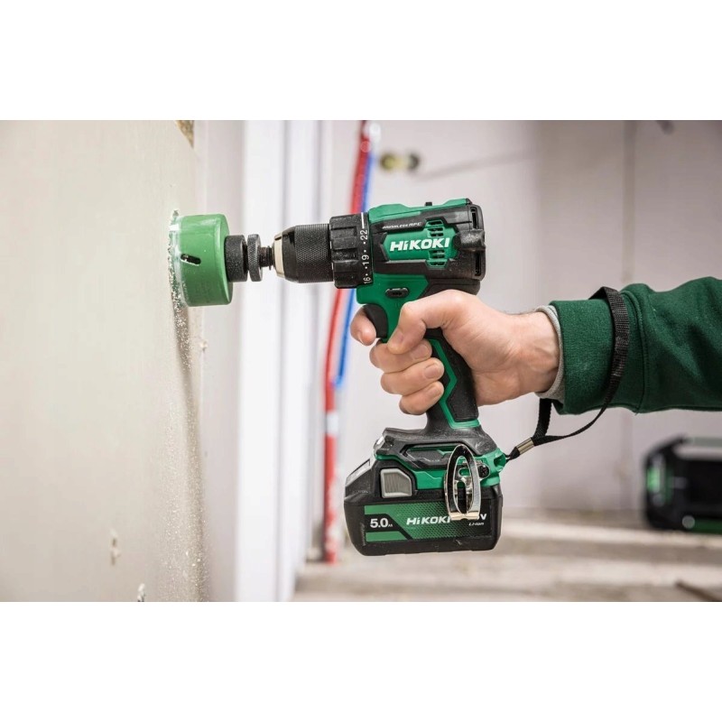 Der Bohrschrauber DS18DE gehört zur Mittelklasse der Werkzeuge im Angebot von Hikoki. Er ist mit einem modernen bürstenlosen Motor ausgestattet, der im Vergleich zu herkömmlichen Bürstenmotoren eine höhere Leistung bietet, wodurch sich die Betriebszeit pro Akkuladung um durchschnittlich etwa 50 % verlängert. Das hohe Drehmoment von 70 Nm und die hohe Bohrgeschwindigkeit machen dieses Werkzeug sehr vielseitig. Es verfügt über kompakte Abmessungen und einen nur 155 mm langen Gehäusekörper. Der Bohrschrauber ist mit einem schlüssellosen Bohrfutter, einer automatischen Spindelarretierung, einer 22-stufigen Kupplung, einem rutschfesten Soft-Touch-Griff und einer LED-Beleuchtung ausgestattet. Für Komfort und Arbeitssicherheit verfügt das Modell DS18DE über das RFC-System (Reactive Force Control), das die Hände des Benutzers bei einem plötzlichen Stillstand der Spindel schützt.
