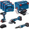 BOSCH.COMBO SET 18 V (GSR 18V-90C + GWS 18V-15 PSC + GKM 18V-50 + GGS 18V-23 PLC) 1xPC4,0Ah 2xPC5,5Ah ...