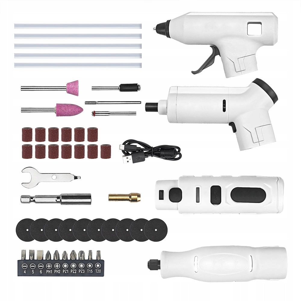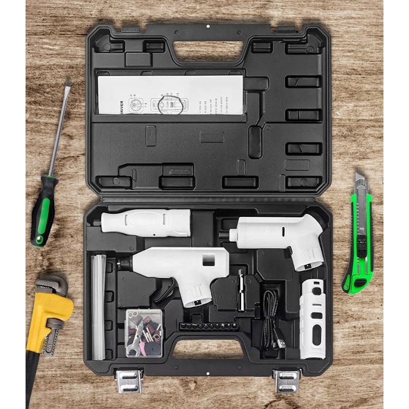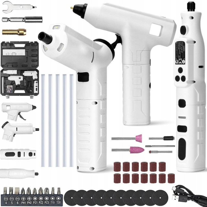 Das 3-in-1-Set, bestehend aus einem Elektroschrauber, einer Mini-Schleifmaschine/Fräse und einer Klebepistole, ist die perfekte Lösung für jeden Heimwerker. Dank dieses vielseitigen Sets werden Reparaturen im Haushalt einfacher und machen mehr Spaß. Es wurde speziell für die täglichen Bedürfnisse der Nutzer entwickelt und bietet Komfort und Funktionalität.