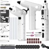 Das Set enthält außerdem vielfältiges Zubehör wie Schraubaufsätze, Drehwerkzeuge und Klebstoffpatronen, was es zu einer Komplettlösung für jeden Heimwerker macht.