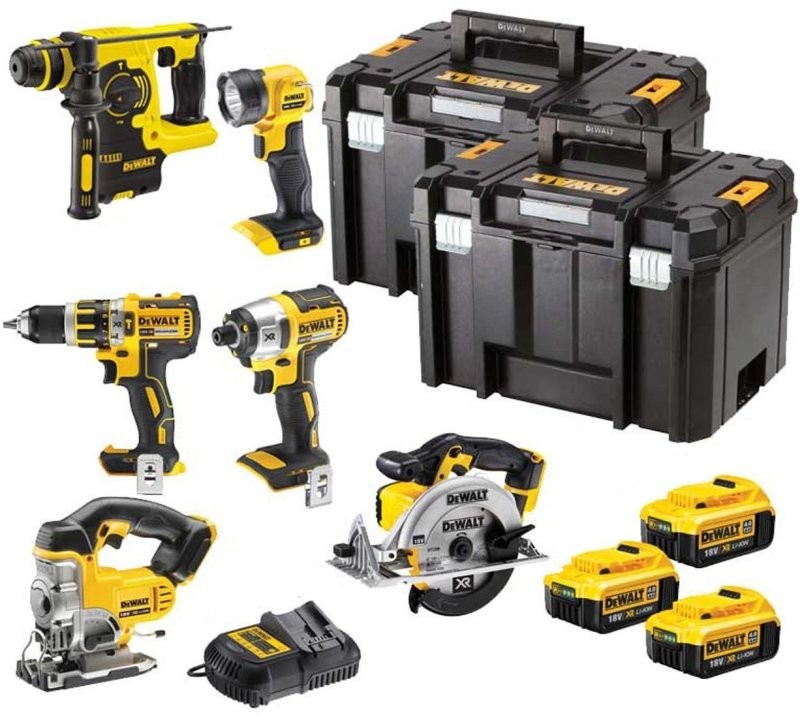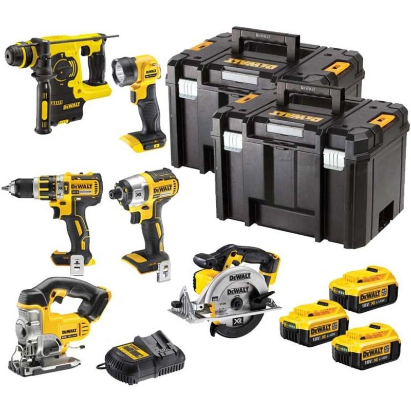 Dieses beeindruckende DeWalt 18V-Set ist die perfekte Lösung für anspruchsvolle Heimwerker und Profis. Es enthält sechs hochwertige Elektrowerkzeuge, die von drei leistungsstarken 4,0-Ah-Li-Ion-Akkus betrieben werden, ein Multispannungs-Ladegerät sowie zwei robuste TSTAK VI-Koffer, die für bequemen Transport und sichere Aufbewahrung sorgen. Alle Geräte arbeiten in einem einzigen Akkusystem zusammen, was vollständige Kompatibilität und Mobilität bedeutet.