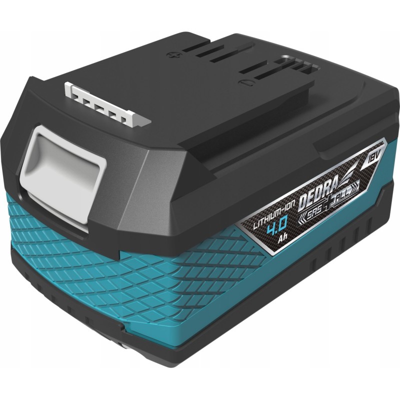 Im Lieferumfang sind zwei Akkus enthalten: der DED7032 mit einer Kapazität von 2,0 Ah und der DED7034 mit einer Kapazität von 4,0 Ah. Beide Akkus sind in Lithium-Ionen-Technologie gefertigt, wodurch sie jederzeit wieder aufgeladen werden können. Darüber hinaus erhöhen Ladeanzeigen und eine Gummibeschichtung am unteren Gehäuseteil ihre Widerstandsfähigkeit gegen Beschädigungen.