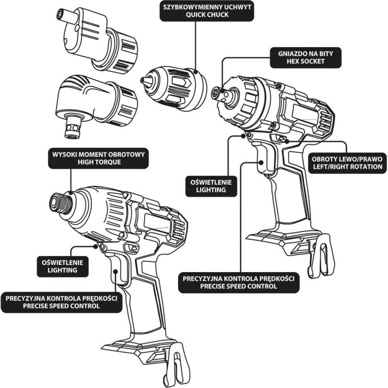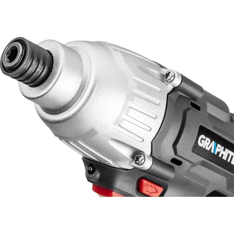 Der Schrauber der Marke GRAPHITE zeichnet sich durch ein hohes Drehmoment von 180 Nm und eine Drehzahl von bis zu 2200 Umdrehungen pro Minute aus. Er verfügt über ein universelles 6,35-mm-Werkzeugfutter (1/4”), das ein komfortables Arbeiten mit einer großen Auswahl an Schraubendreheraufsätzen und Bits ermöglicht. Eine LED-Leuchte beleuchtet den Arbeitsbereich, und die Möglichkeit, die Spindel mithilfe der Motorbremse schnell anzuhalten, trägt zur Sicherheit der Benutzer bei.