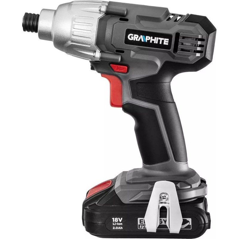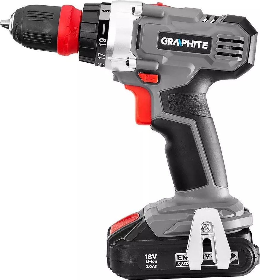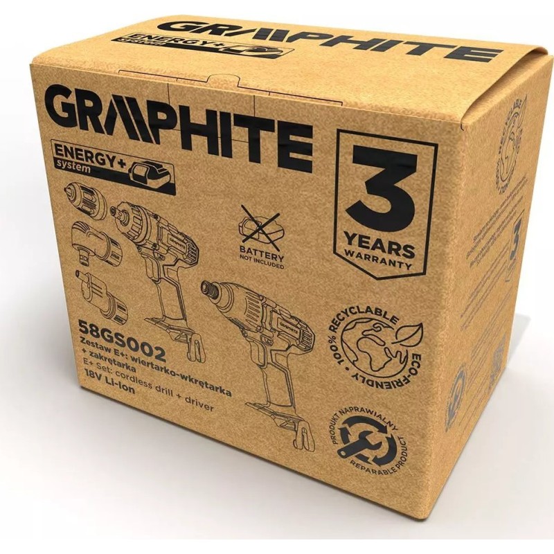 Praktisches Werkzeugset, das mit dem Energy+-Akkusystem funktioniert. Es enthält einen hochwertigen Bohrschrauber der Marke GRAPHITE (58G022-AD), einen 18-V-Lithium-Ionen-Akku mit 2,0 Ah (58G001) sowie ein Ladegerät für Energy+-Akkus (58G002).