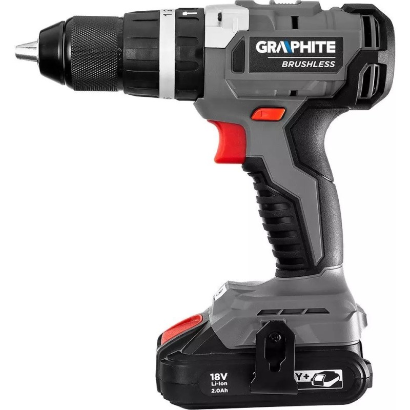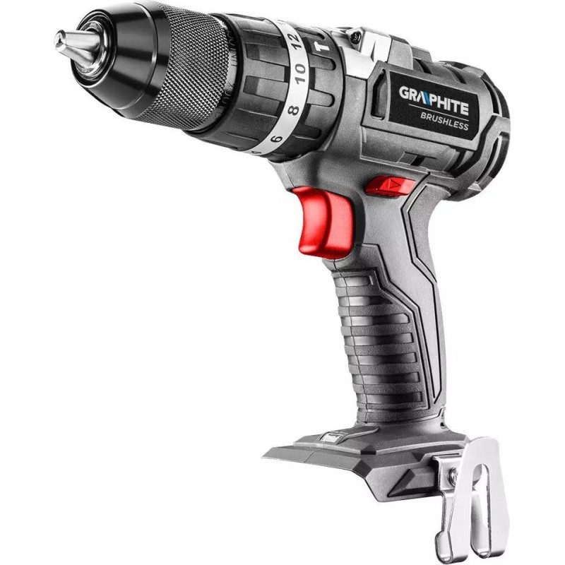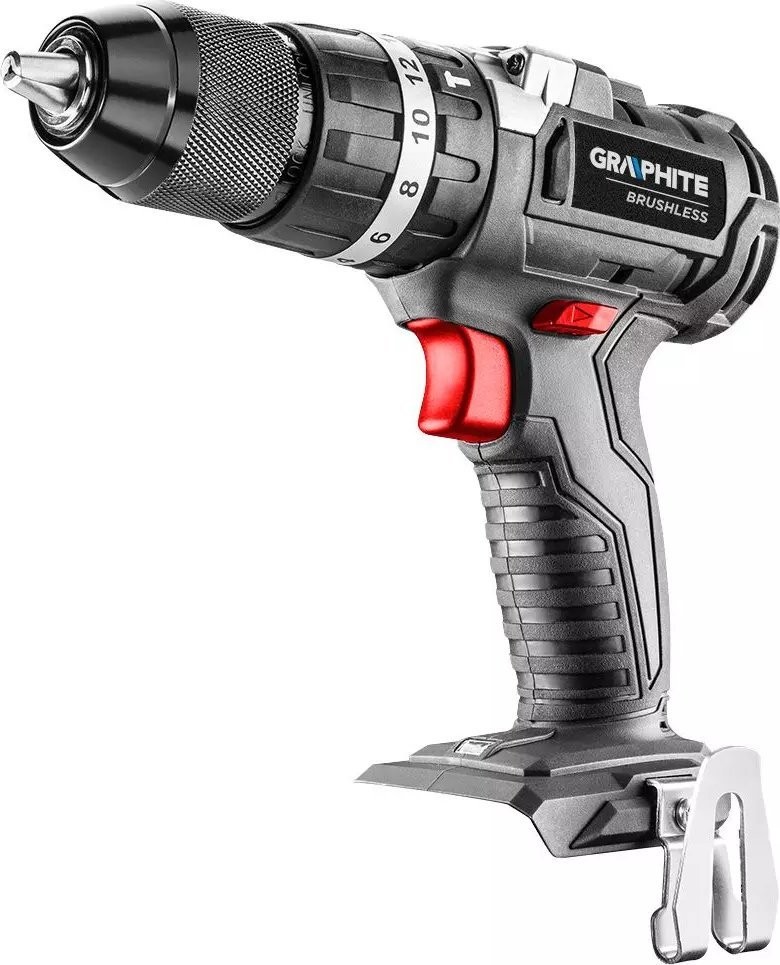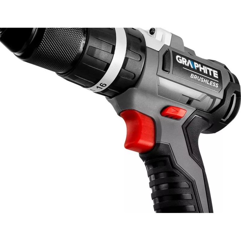 Der Bohrschrauber verfügt über eine elektrische Motorbremse und eine automatische Spindelarretierung. Die LED-Anzeige leuchtet auf, sobald das Werkzeug in Betrieb genommen wird. Der selbstspannende Bohrfutter ermöglicht die bequeme Aufnahme von Zubehör mit einem Durchmesser von 2 bis 13 mm. Der ergonomische Griff aus zwei Materialien sorgt für Bedienkomfort und sicheren Halt. Diese Bohrmaschine und dieser Schlagschrauber der Marke GRAPHITE sind bewährte Elektrowerkzeuge, die für eine lange Lebensdauer ausgelegt sind.