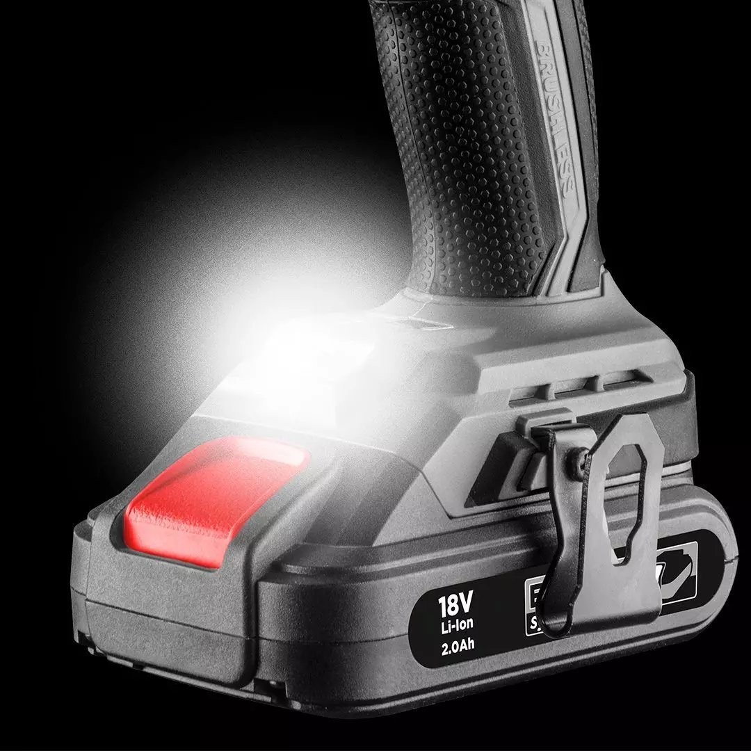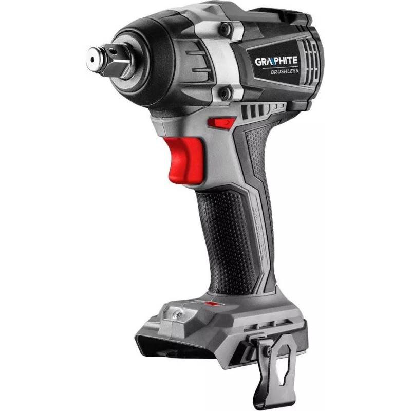 Der Schlagschrauber GRAPHITE verfügt über eine im Gehäuse integrierte LED-Leuchte, die den Arbeitsbereich ausleuchtet. Unter dem Finger befindet sich zudem eine Taste für die elektrische Motorbremse, die ein schnelles Anhalten der Spindel ermöglicht. Das Werkzeug verfügt über einen ergonomischen Griff und eine optimierte Länge, wodurch die Arbeit beschleunigt und erleichtert wird.