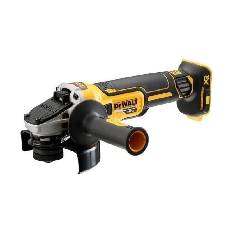 • Praktischer Winkelschleifer mit klassischem Schalter, flachem Stahlgetriebe, werkzeugloser Schutzhaube und zweistufigem Seitengriff