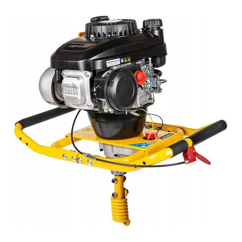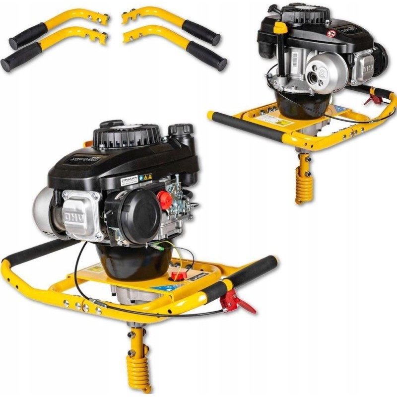 Der Erdbohrer / die Erdbohrmaschine mit einer Leistung von 4,5 PS ist eine robuste Maschine für den Einsatz in hartem Boden. Er ist einfach zu bedienen und komfortabel in der Handhabung und bietet mit einer Drehzahl von 200 Umdrehungen pro Minute eine hohe Leistung. Für den Erdbohrer sollte ein Kraftstoff-Öl-Gemisch im Verhältnis 1:40 verwendet werden. Das Gesamtgewicht des Erdbohrers beträgt 17,5 kg. Die Konstruktion des Erdbohrers garantiert eine einfache und komfortable Bedienung durch eine Person.