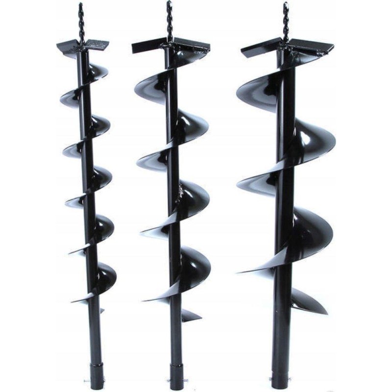 Der mit einem Bohrer mit Dämpfungsfeder ausgestattete Erdbohrer verbessert den Arbeitskomfort des Bedieners, indem er Stöße und Vibrationen eliminiert, die auf das Getriebe und den Bohrgriff übertragen werden. Der Einsatz entsprechend ausgewählter Bohrer ermöglicht es uns, Bohrungen bedarfsgerecht durchzuführen. Optional sind Bohrer mit folgenden Durchmessern erhältlich: 100, 150, 200, 250 und 300 mm