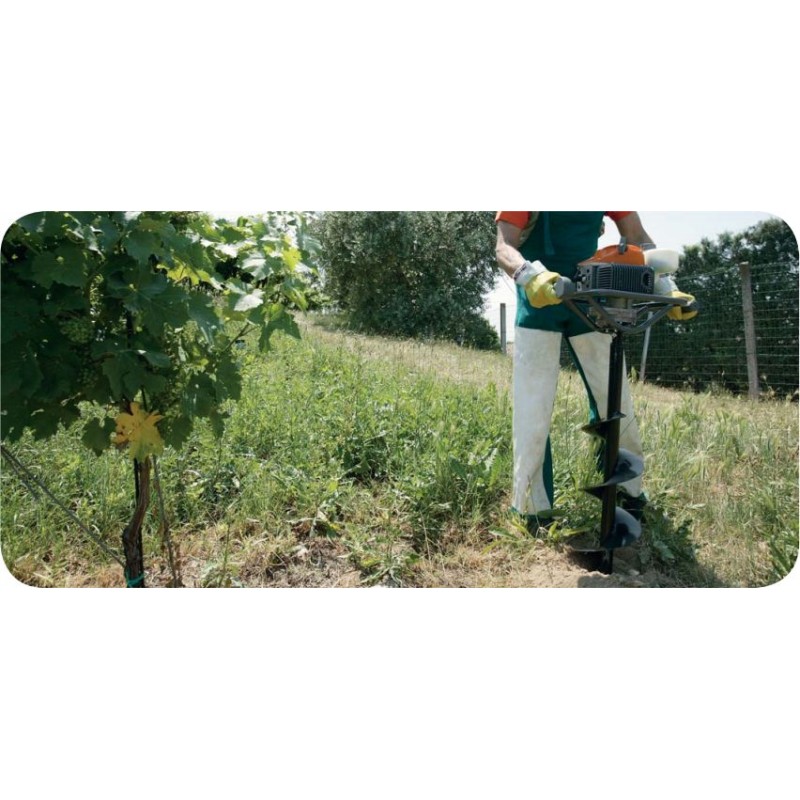 • Das Modell wurde für kleinere Bohrungen im Boden für verschiedene Anwendungen (Weinberge und Pflanzen, Straßenbeleuchtung, Zaunhalterungen) entwickelt und ist mit einem Emak-Zweitaktmotor, einem verchromten Zylinder sowie einer Motorwelle und einer Pleuelstange aus geschmiedetem Stahl ausgestattet.