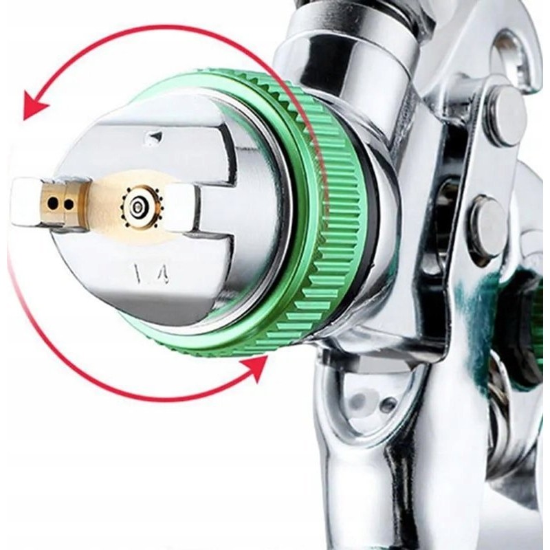 ✔️ Strahlregulierung: Ermöglicht die Wahl zwischen einem runden und einem flachen Farbstrahl, was sich auf die Eigenschaften des Farbauftrags auf die Oberfläche auswirkt.