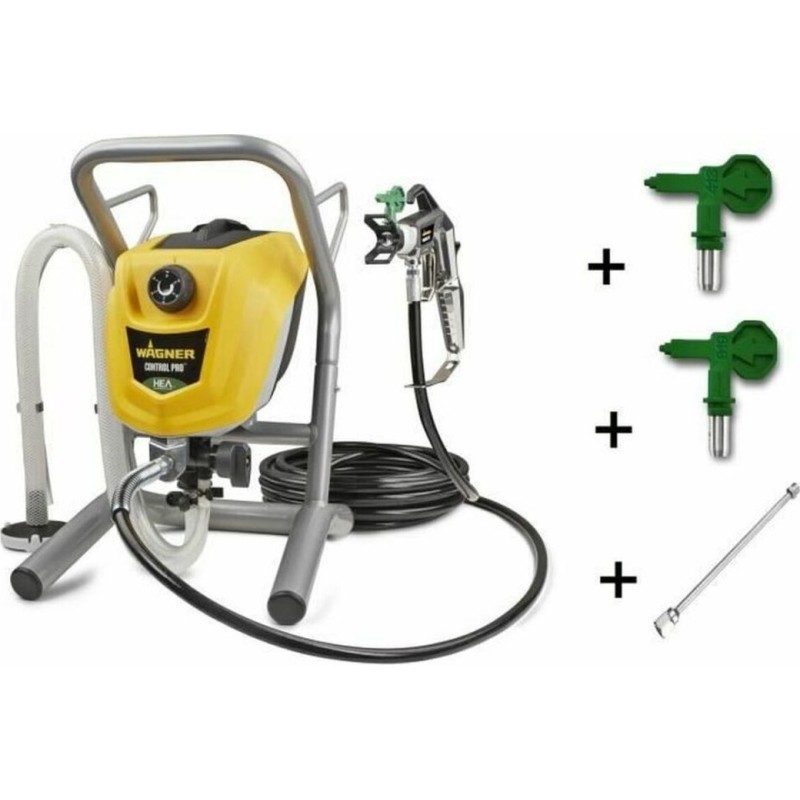 Airless-Kolbenpumpe für mittlere und sehr große Projekte – Ausgestattet mit der innovativen High-Efficiency-Airless-Technologie - Ausgestattet mit Pro-Fluid-Düsen, Pro-517-Wanddüsen, einer Hybrid-Spritzpistole und einem HEA-Filterset - Materialdurchfluss: 1,25 l/min - Druck: 110 bar - Leistung: 550 W - Schlauchlänge: 9 m