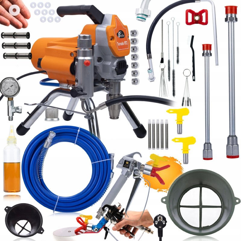 Das Farbspritzgerät Rosfix Tornado RT2 UltraSpray ist ein hochmodernes Gerät für professionelle Malerarbeiten, ideal für anspruchsvolle Anwender, die Wert auf Effizienz, Präzision und Langlebigkeit der Ausrüstung legen. Mit seiner Hilfe wird das Streichen von Innenräumen schneller, einfacher und effektiver, was es zu einer ausgezeichneten Wahl sowohl für Profis als auch für Hobbyhandwerker macht, die auf der Suche nach hochwertiger Ausrüstung sind.