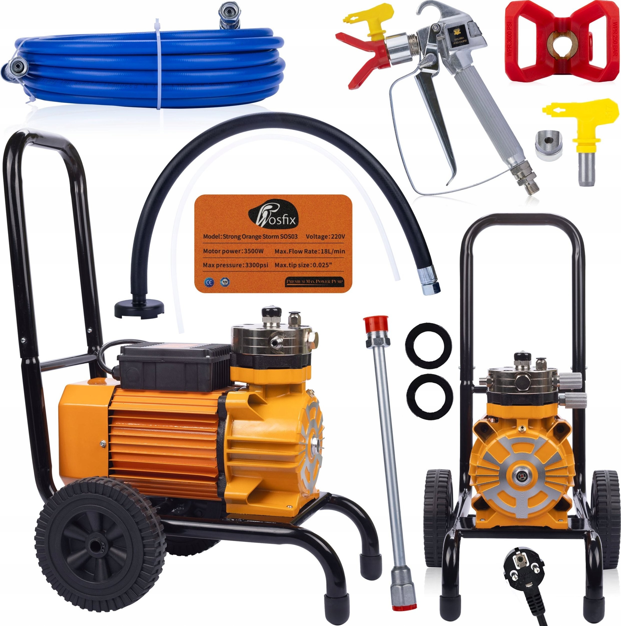 Rosfix Strong Orange Storm SOS03 Farbspritzgerät 3500 W, 22 MPa, 18 l/min, inklusive Farbspritzzubehör-Set