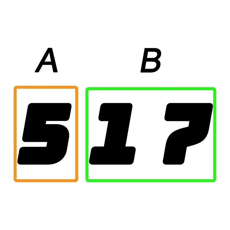 2️⃣ Die letzten beiden Ziffern (B) – geben die Größe der Düsenöffnung und die Farbdichte an. Je höher die Zahl, desto dichter die Farbe. Beispielsweise steht „517“ für eine Düse mit einer Strahlbreite von 25 cm und einem Durchmesser der Düsenöffnung von 0,017 Zoll.