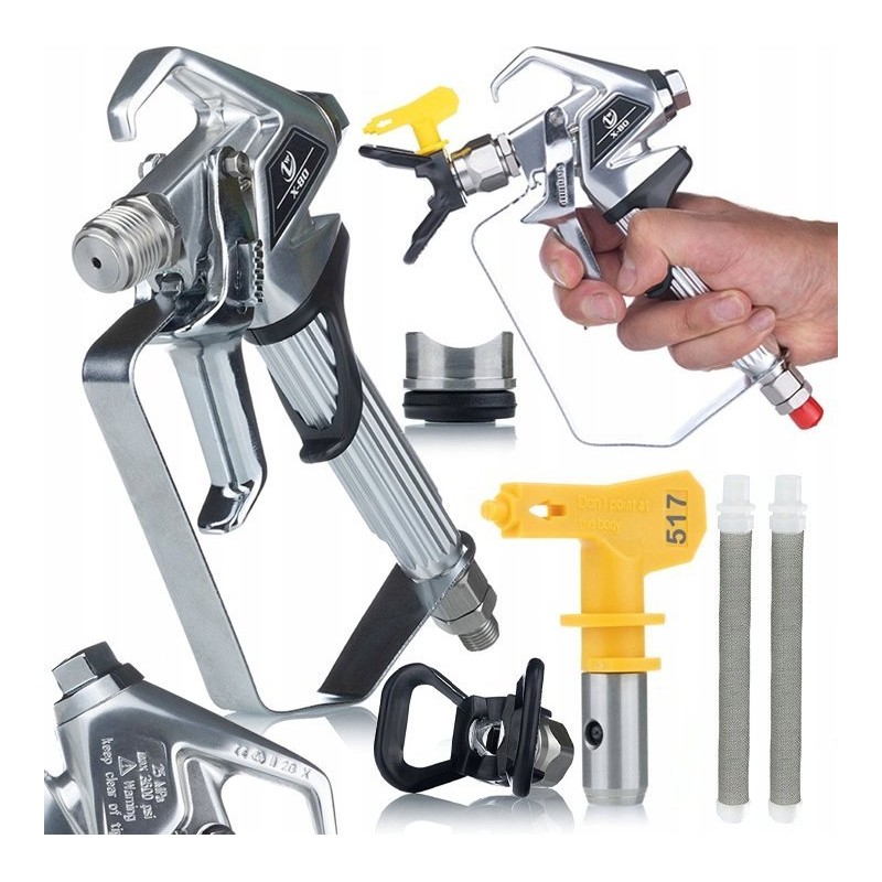 Rosfix Hochdruck-Lackierpistole Rosfix UltraSpray mit 2-Finger-Auslöser ZT-80 und Schutzabdeckung + Rosfix Ultra Spray-Lackierdüse 517 + 2x weißer Stabfilter 60 Mesh