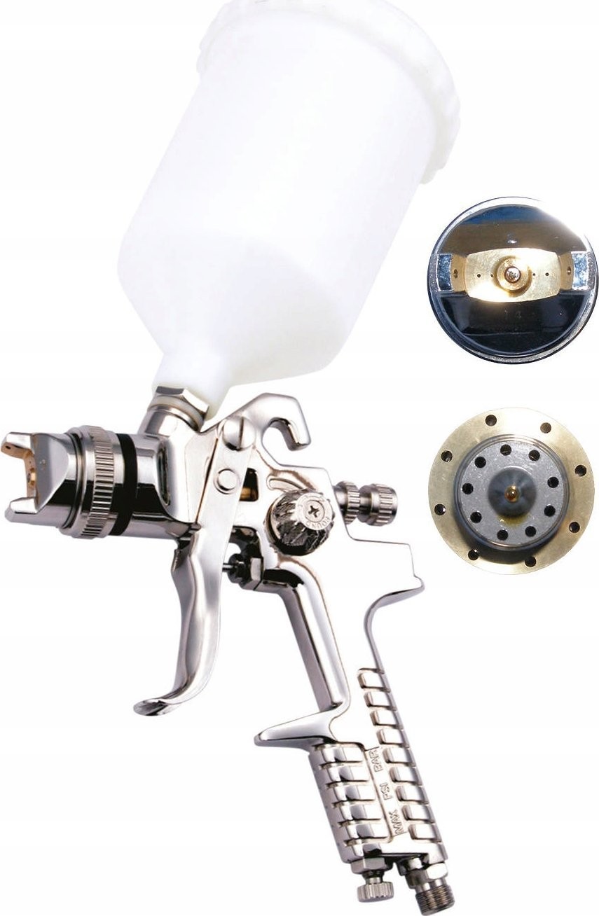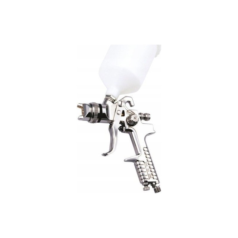 Das Modell AD-H827W HP ist eine professionelle Hochdruck-Lackierpistole. Fortschrittliche Konstruktion von Pistole und Düse. Die Pistole ist mit einem oberen, schwerkraftgespeisten Kunststoffbehälter mit einem Fassungsvermögen von 600 ml ausgestattet.