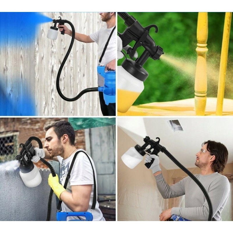 Das Gerät ist leicht und komfortabel in der Handhabung, was das Streichen erheblich erleichtert. Im Lieferumfang ist ein Gurt enthalten, mit dem die Spritzpistole über die Schulter gehängt werden kann, was den Arbeitskomfort erhöht. Die Bedienung des Geräts ist äußerst einfach – ein Knopfdruck genügt, um mit dem Streichen zu beginnen.