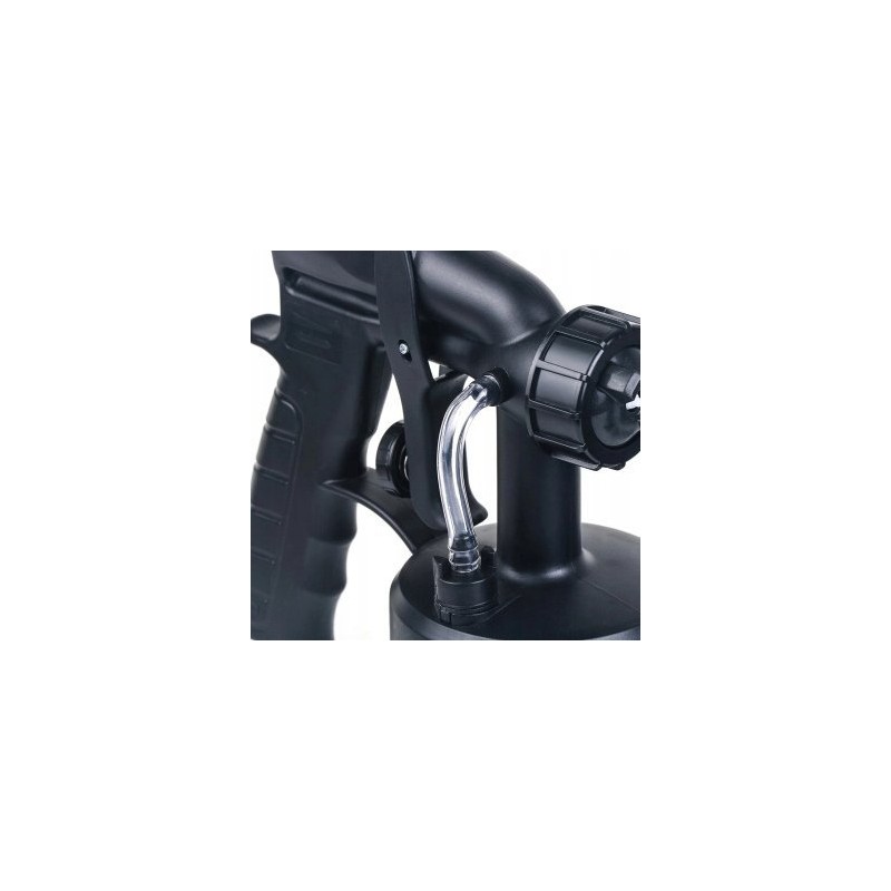 Die Spritzpistole wird mit 230 V und einer Leistung von 650 W betrieben, was eine hohe Lackierleistung gewährleistet. Der Motor erreicht eine Drehzahl von 32.000 U/min, wodurch in nur 10 Minuten etwa 15 m² gestrichen werden können. Dadurch werden Malerarbeiten schneller und effizienter.