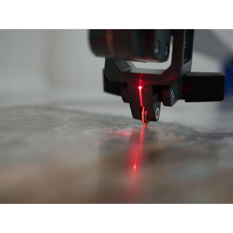 Die innovative Funktion des integrierten Lasers, der die Schnittlinie anzeigt, erhöht die Präzision der Arbeit. So kann der Anwender sicher sein, dass jeder Schnitt exakt und gemäß dem beabsichtigten Entwurf erfolgt, was bei komplexen Gestaltungsvorhaben entscheidend ist.