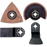 • Im Set enthalten: 85-mm-Segmentsäge WS (für Keramikfliesen), 78-mm-Dreieckschleifscheibe WS (für Keramikfliesen), 52-mm-Hartmetallschaber HCS, 32-mm-Bimetall-Tiefschnitt-Säge (für Metall)