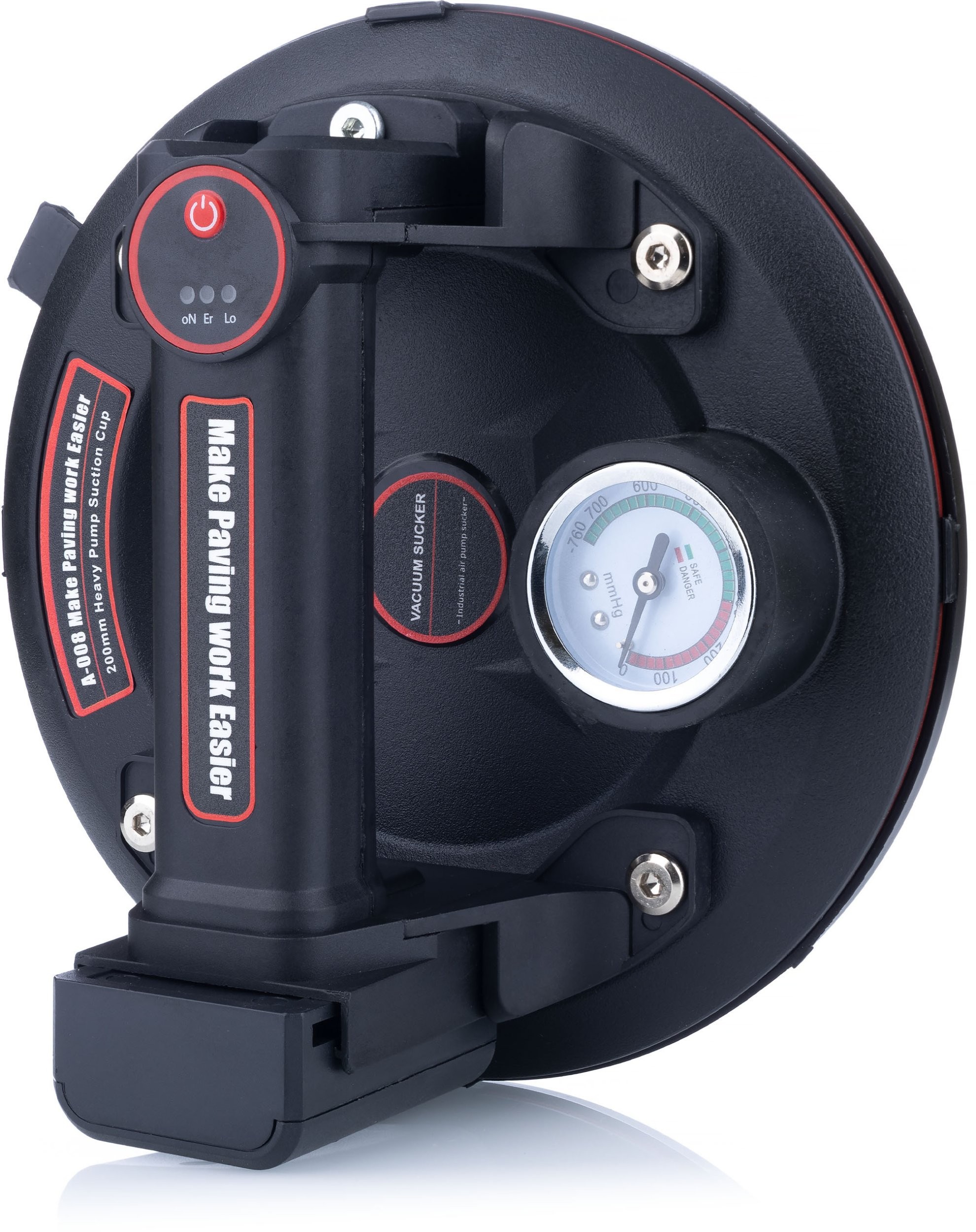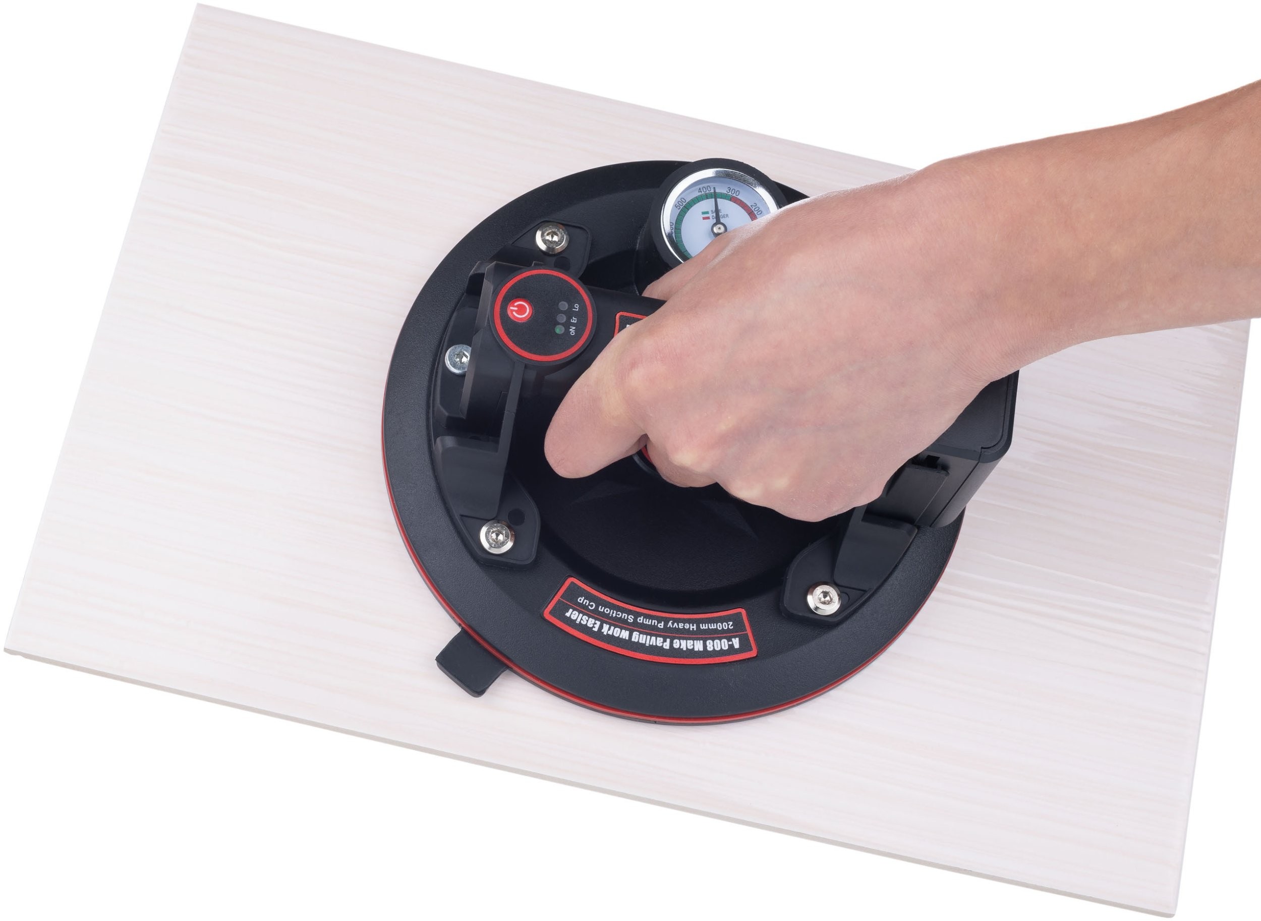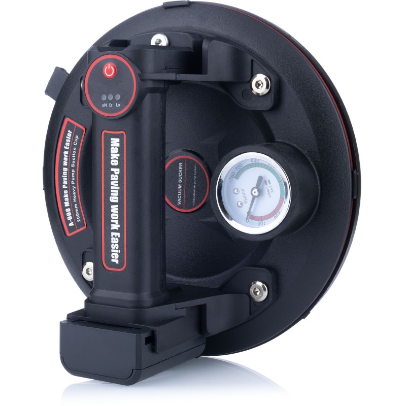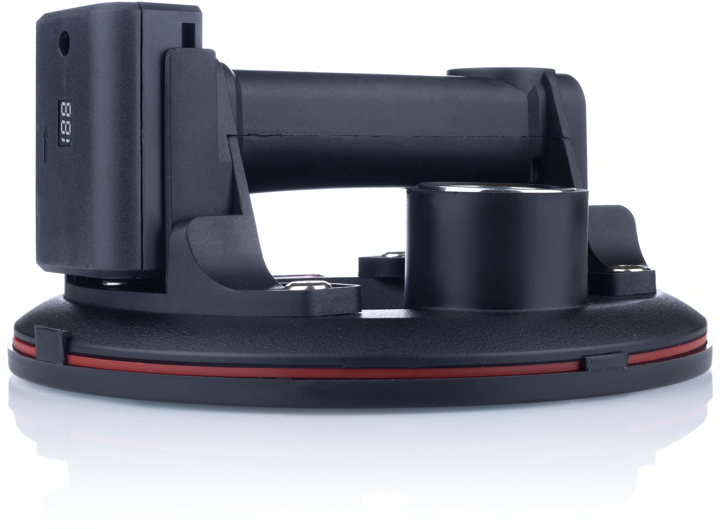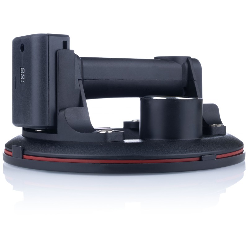 Ausgestattet mit einer intelligenten Anzeige und einem Manometer ermöglicht der Saugnapf die laufende Überwachung der Saugkraft. Diese innovative Lösung sorgt für zusätzliche Sicherheit, da der Anwender die Saugkraft ständig kontrollieren kann.