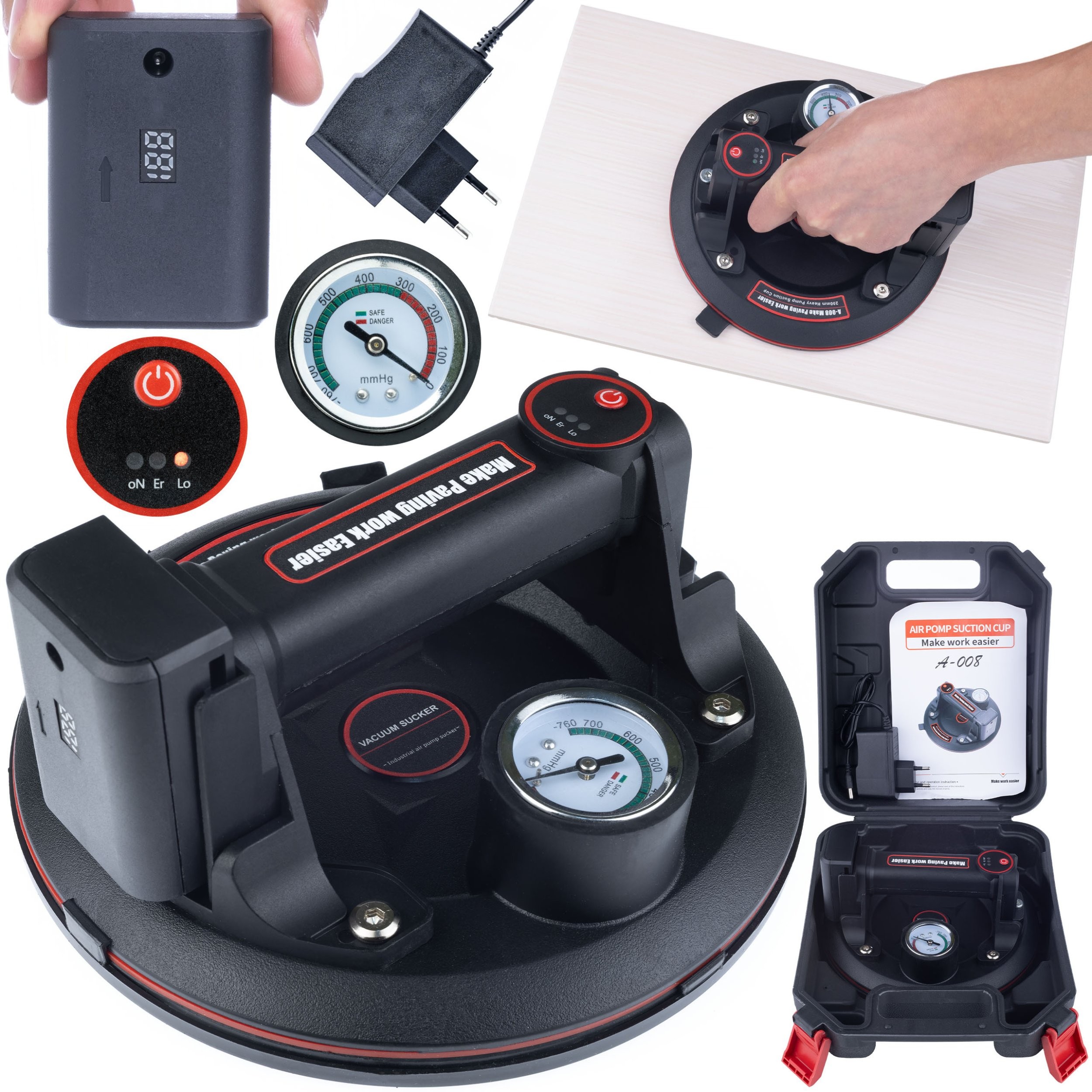 Der Saugnapf wurde mit Blick auf die Benutzer entwickelt und bietet bequeme, rutschfeste Griffe sowie einen robusten Transportkoffer. Dadurch lässt sich das Gerät leicht aufbewahren und transportieren, was seine Vielseitigkeit erhöht.
