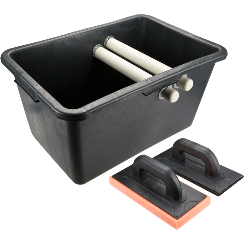 Fliesenleger-Set: 40-Liter-Eimer + Spachtel mit Gummi + Spachtel mit weicher Schwammspitze 13A339