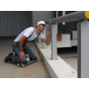 • Integrierte, austauschbare, ergonomische Kniepolster sowie eine Ablage für Werkzeuge und andere Gegenstände.