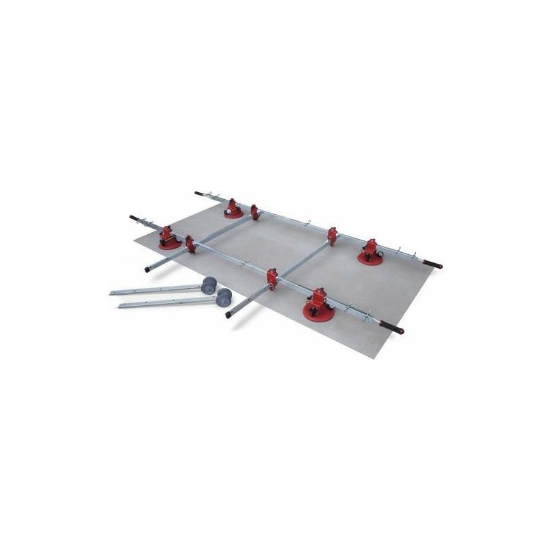 Superlift lässt sich leicht zerlegen, um es für den Transport leichter und kompakter zu machen, und ist vollständig modular aufgebaut, sodass je nach Art und Form der Platte verschiedene Konfigurationen möglich sind. Darüber hinaus sind neben den Standardkonfigurationen mit 4 Saugnäpfen im Katalog zusätzliche Saugnäpfe erhältlich, die an verschiedenen Stellen am Rahmen angebracht werden können, um schwerere Platten oder empfindliche Materialien zu handhaben.