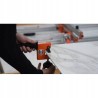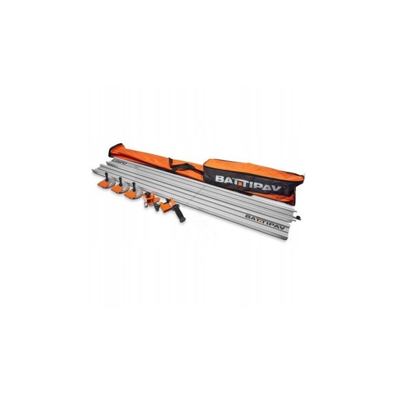 Das Führungsprofil des BATTIPAV Lampo Cut-Systems ist massiv und steif, was eine lange Lebensdauer gewährleistet. Ausgestattet mit rutschfesten Unterlegscheiben garantiert das Werkzeug Stabilität während der Arbeit. Der effektive Schraubspreizer, der integraler Bestandteil des Sets ist, ermöglicht das Spreizen von Verkleidungen mit einer Dicke von bis zu 25 mm, was eine hervorragende Sicht beim Schneiden gewährleistet.