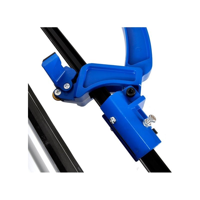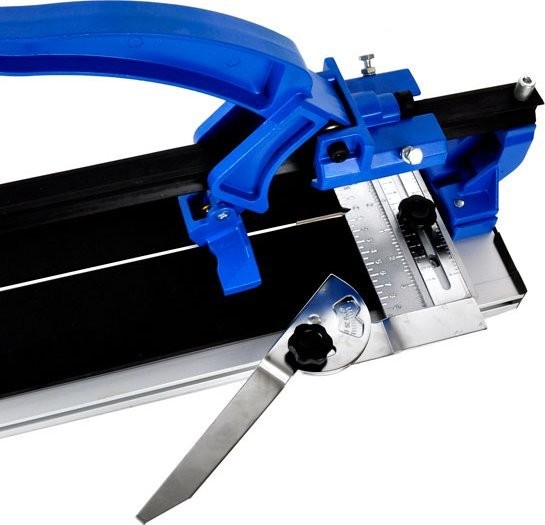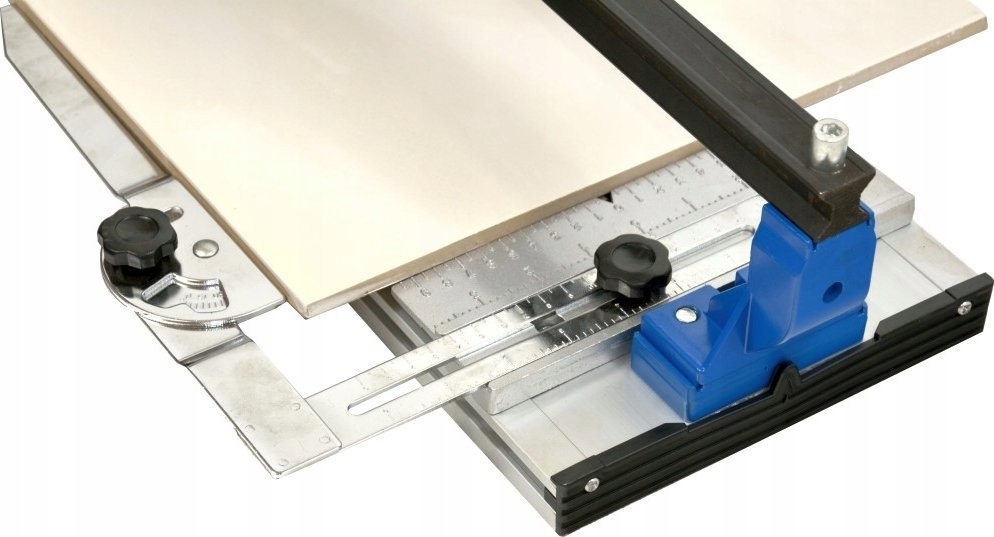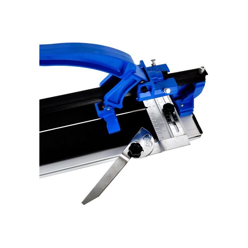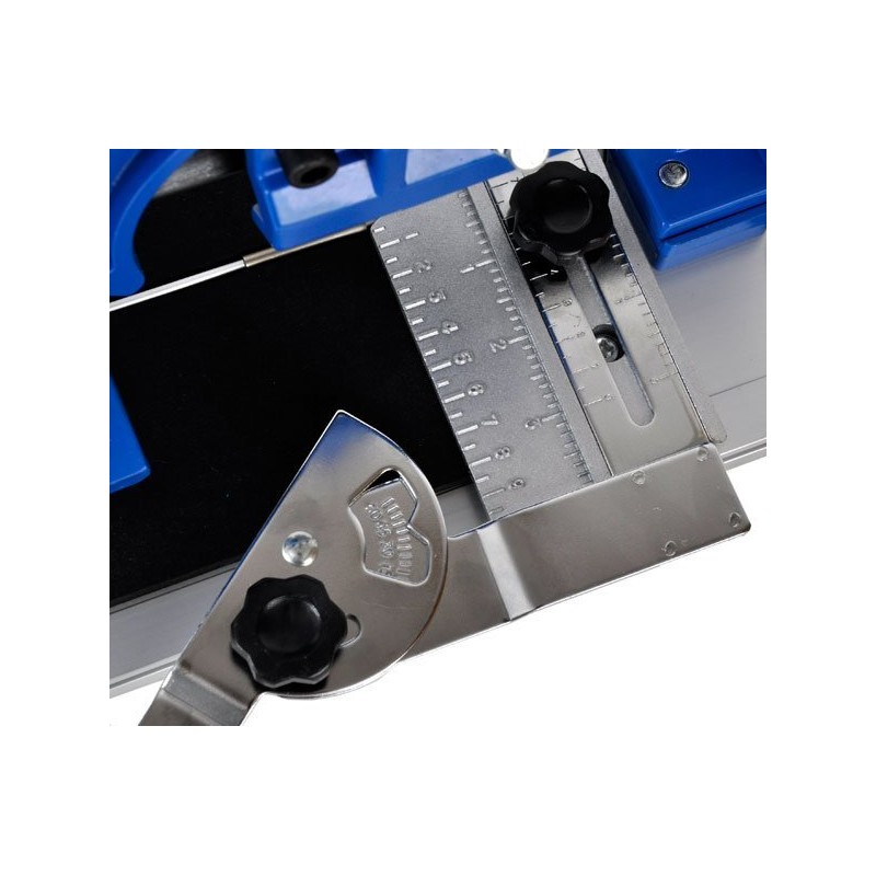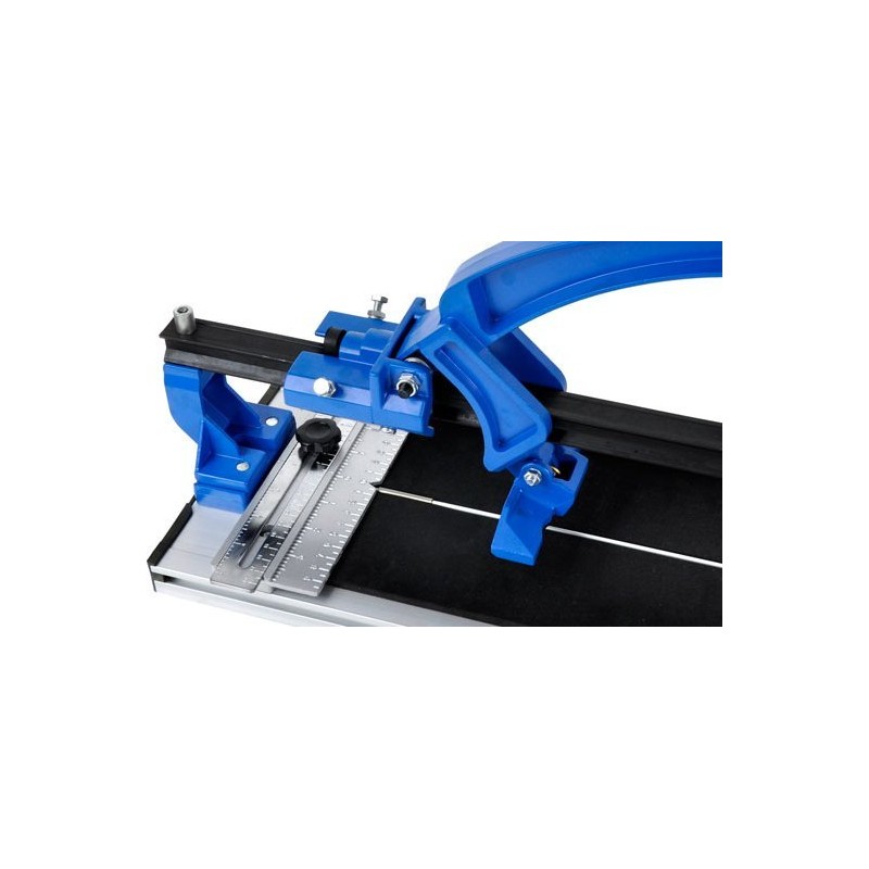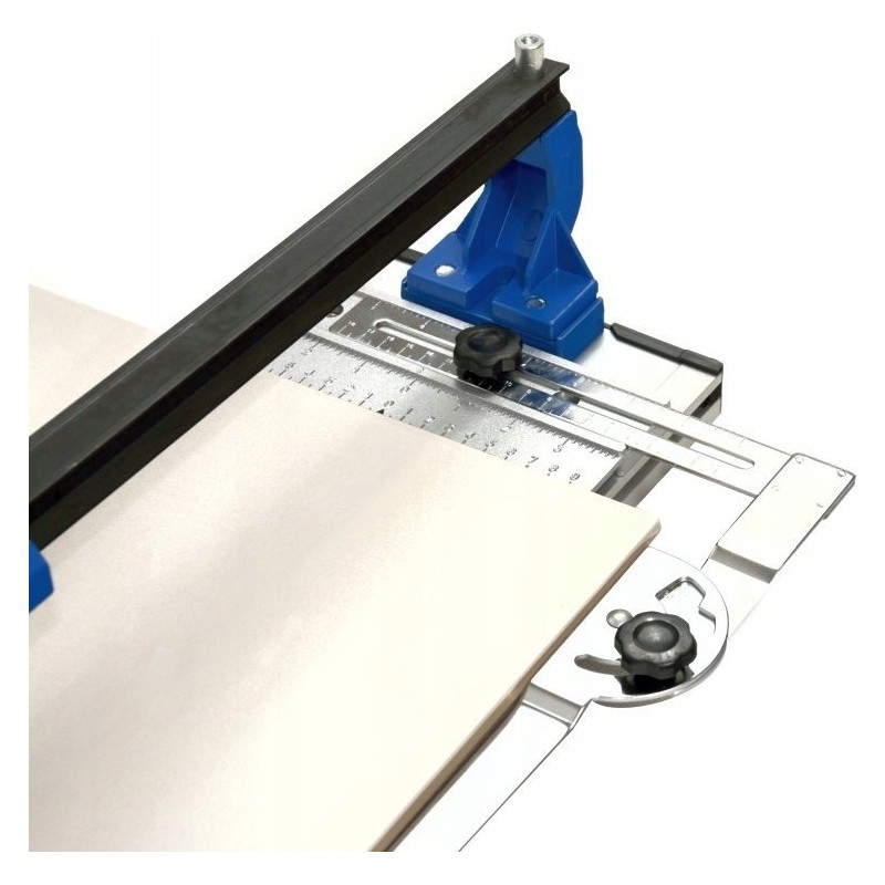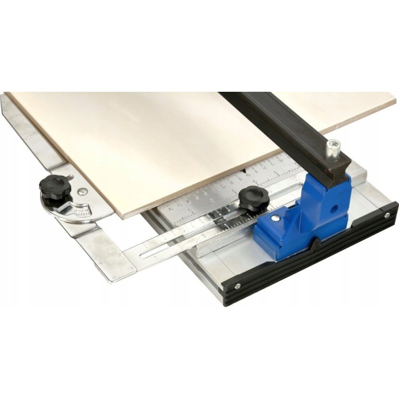 Professionelles Gerät zum Schneiden von Fliesen mit einer Arbeitsfläche von 800 mm. Die robuste, titanbeschichtete Hartmetallklinge sorgt für schnelle Schnitte. Die stabile Schiene mit kugelgelagertem Schneidmechanismus gewährleistet präzises Schneiden von Fliesen mit einer Dicke von bis zu 16 mm. Das Metalllineal ermöglicht eine genaue Messung des Schnitts und die Einstellung des Schnittwinkels im Bereich von 0 bis 60°. Der Aluminiumfuß mit Gummifüßen sorgt für Stabilität des Geräts während des Betriebs.