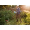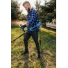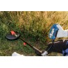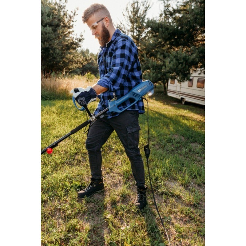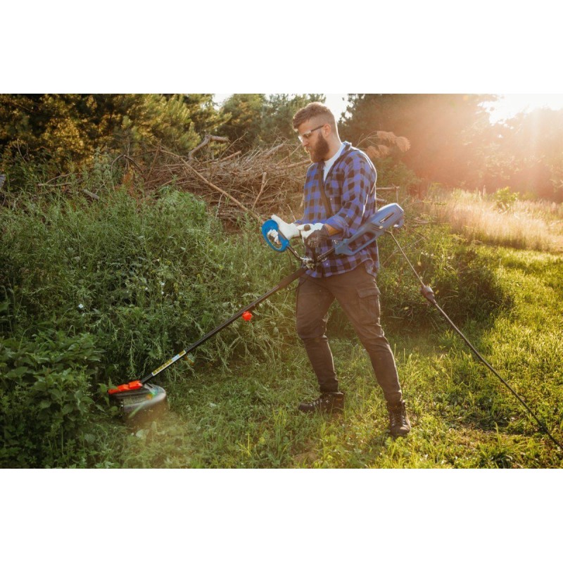Die Motorleistung beträgt 1400 W, was ein schnelles und komfortables Mähen ermöglicht (Drehzahl: 11.000 Umdrehungen pro Minute). Die Arbeitsbreite der elektrischen Motorsense beträgt 42 cm.